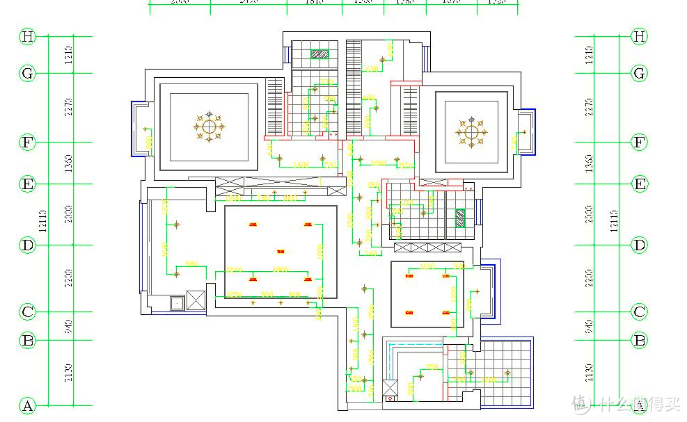 这个是原来的无主灯的灯位图,但是客餐厅无主灯的设计后来被家里除我以外的所有人给否定了,图中原先红点处的斗胆灯全部被取消了,客餐厅也至少无奈的上主灯了,而我家的**也就瞬间降了下来。不过好在书房真的是面积太小所以书房变成了唯一无主灯的地方。