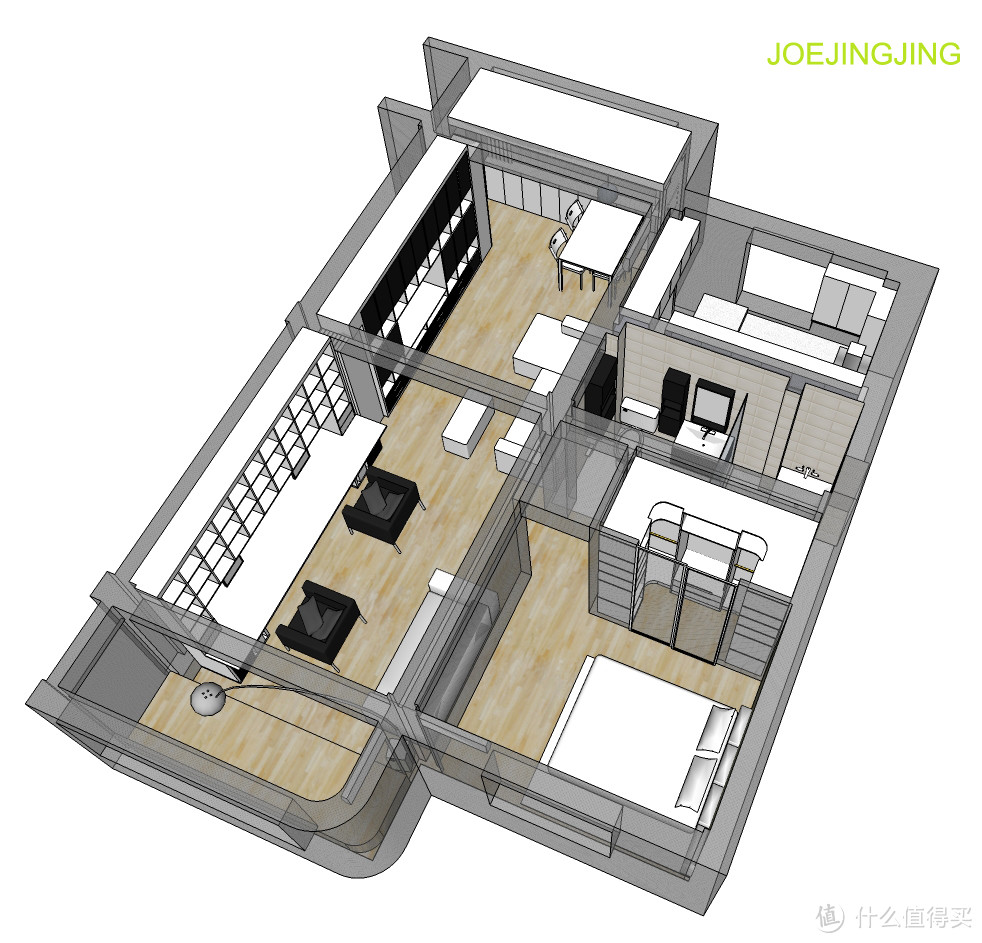 客厅(餐厅)+ 书房(客房)+ 厨房 + 厕所 + 卧室