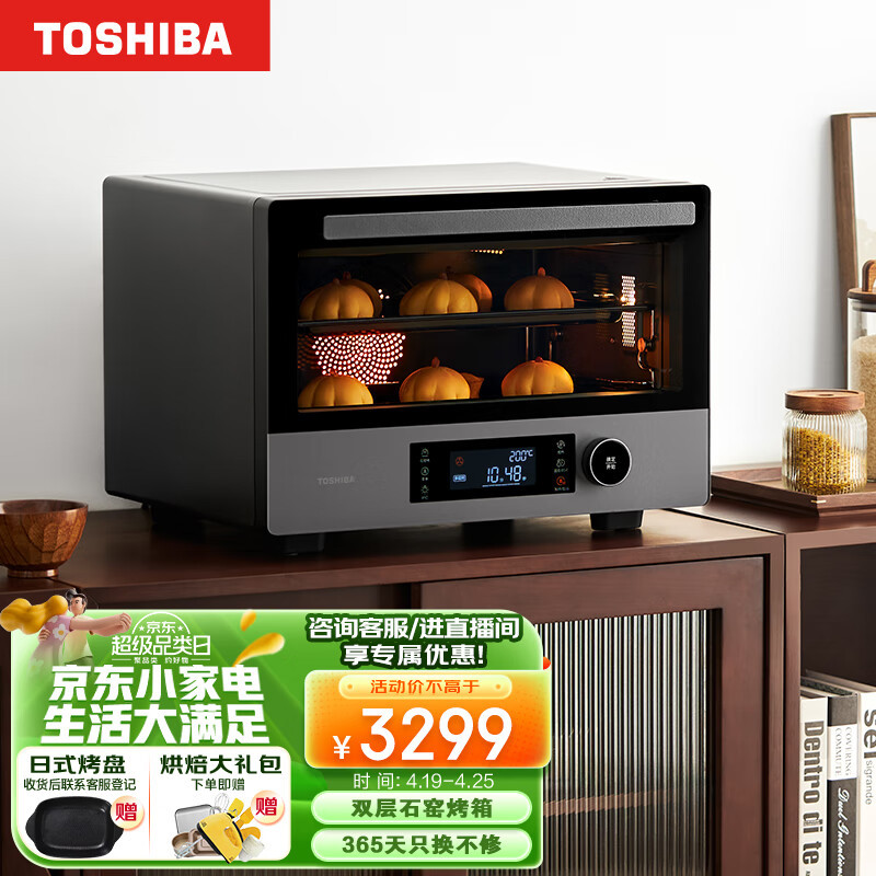 东芝(TOSHIBA)ET-XD7380电烤箱空气炸锅一体机窑炉烤箱家用台式大容量风炉平炉合一石墨烯发酵箱石窑烤烘焙38L3299元京东去购买
